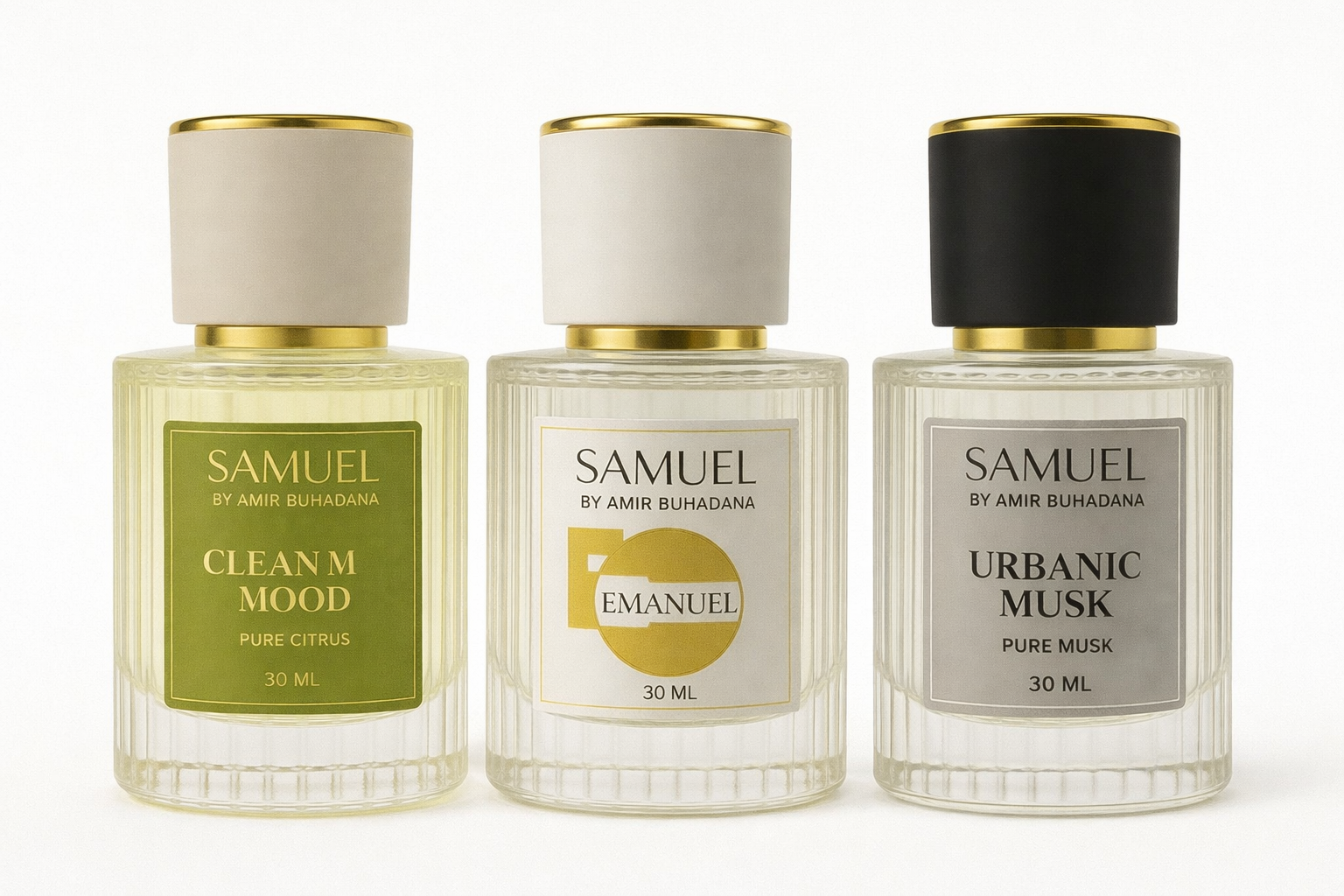 שלישיית ניחוחות מדויקת מבית SAMUEL BY AMIR BUHADANA, המאגדת שלושה בשמים שונים באופי שלהם, אך מחוברים לאותה שפה של יוקרה, נוכחות וסטייל.