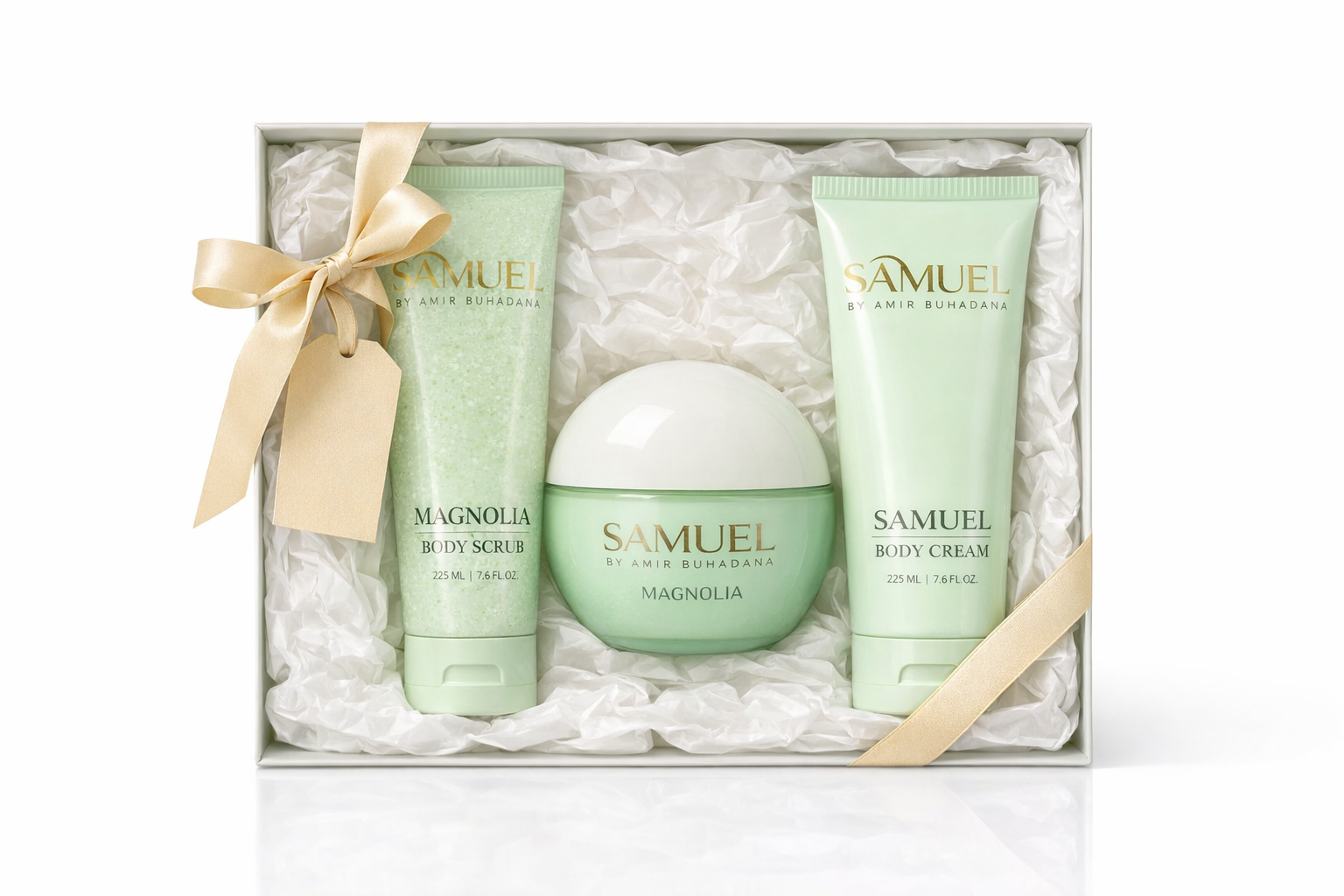 מארז מגנוליה הוא חוויית גוף מלאה שנבנתה כדי להעניק לעור ניקוי מחודש, הזנה עמוקה ורכות ממכרת בשכבות. שלושת המוצרים עובדים יחד בהרמוניה מושלמת ויוצרים שגרת טיפוח עשירה שמלטפת את העור ומשאירה אותו חלק, מטופח ומבושם בניחוח מגנוליה אלגנטי, נשי ובלתי נשכח.