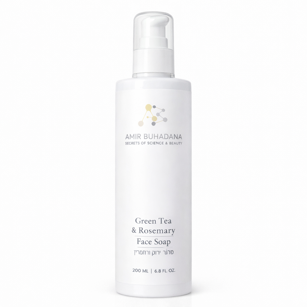 סבון פנים עדין ויעיל לניקוי יסודי של העור, המבוסס על שילוב מרענן של תה ירוק ורוזמרין. הפורמולה מסייעת להסיר שומן עודף, לכלוך ושאריות זיהום סביבתי, מבלי להשאיר תחושת כובד או יובש מיותר. תה ירוק ידוע כנוגד חמצון המסייע לשמור על מראה עור רענן וחיוני, בעוד שרוזמרין מעניק תחושת ניקיון ואיזון. מתאים לשימוש יומיומי ולמגוון סוגי עור, במיוחד לעור מעורב, שומני או כזה הזקוק לניקוי אפקטיבי עם תחושה נקייה ונעימה.