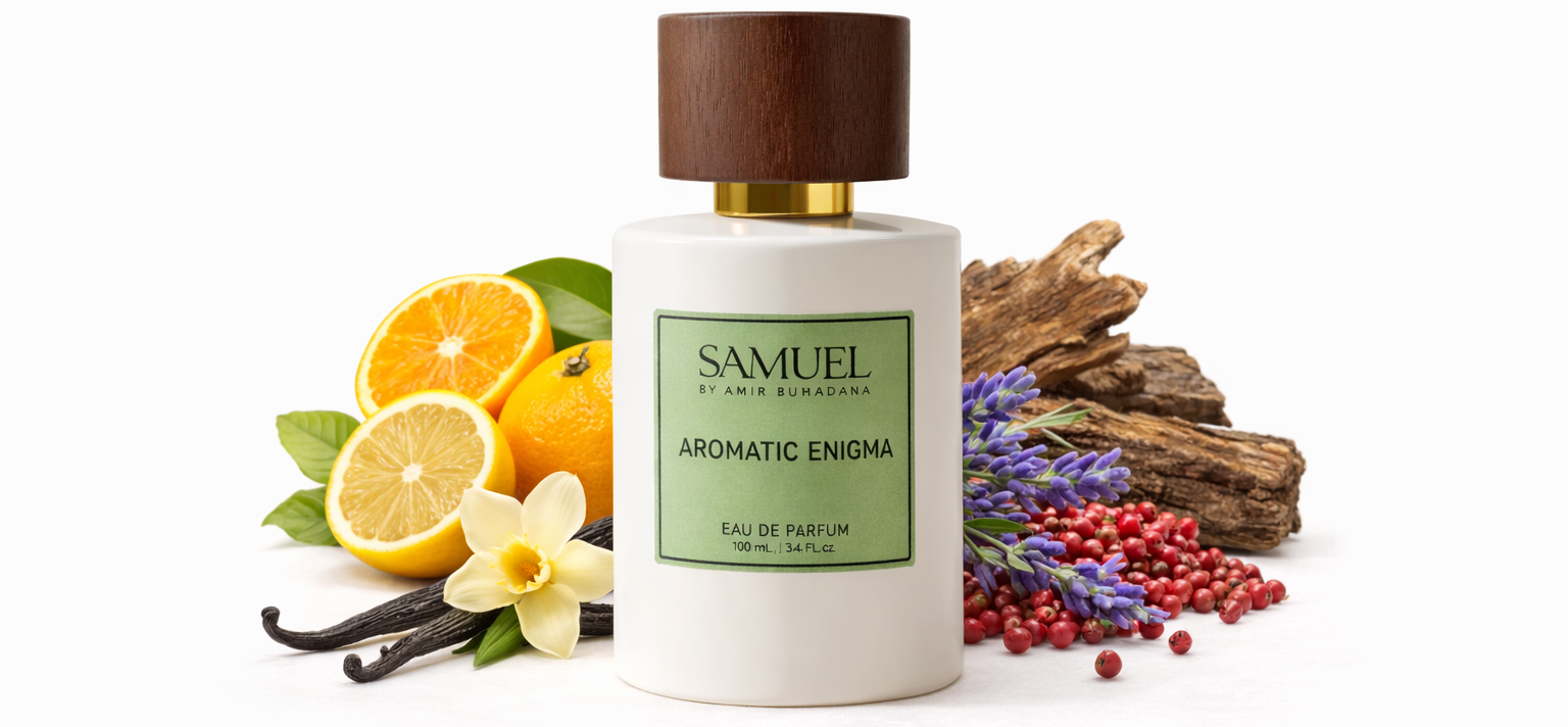 Aromatic Enigma הוא בושם שמשלב ניחוחות חזקים ומתוקים באופן שמרגיש כמו סוד שממתין להתגלות. תערובת של תפוזים ולימון, יחד עם וניל ופלפל ורוד, יוצרת חוויה ארומטית ייחודית. תווי העץ והלבנדר מוסיפים לו עומק, ומביאים איתם תחושת נועזות ורעננות. זהו בושם שמביא איתו יוקרה ותחושת עוצמה, עם רמיזות לסוד שממתין להתגלות..