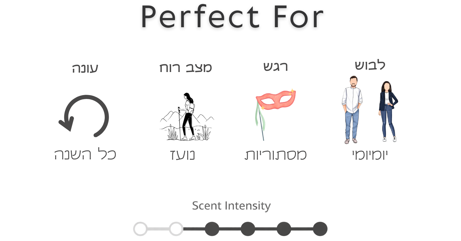 לנשים וגברים שמחפשים בושם יוצא דופן – כזה שמגלה רק חצי מהסיפור, ומזמין את הסביבה להשלים את השאר. ניחוח שמשדר ביטחון, תחכום ואינדיבידואליות.