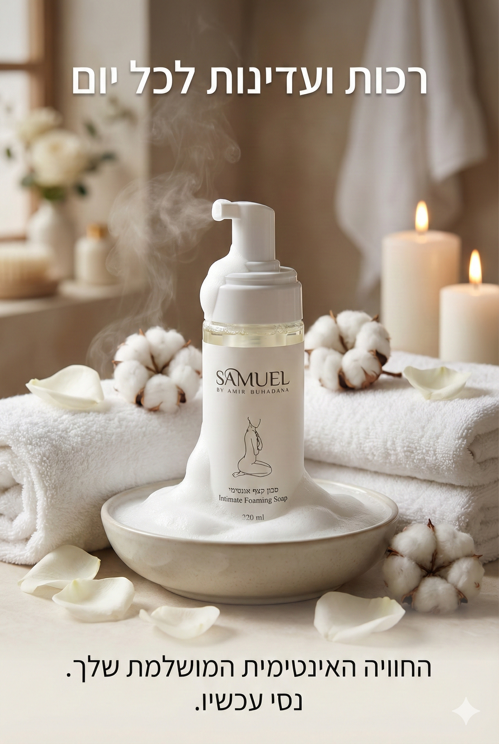 תכשיר ניקוי אינטימי מוקצף ייעודי לנשים שפותח בהתאמה לאזור הווגינלי החיצוני תוך שמירה על המעטפת ההידרוליפידית והאיזון המיקרוביאלי הטבעי