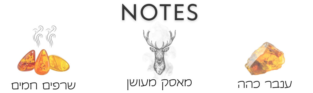 הוא נבנה על תווים עמוקים, יקרים ונשגבים: אמבר עשיר, שרף עץ הוד מהודר, עור מעודן ומוסקים יוקרתיים – כולם יחד יוצרים ענן ריח בלתי נשכח, מהפנט, שמתפתח על העור ומספר סיפור אישי.